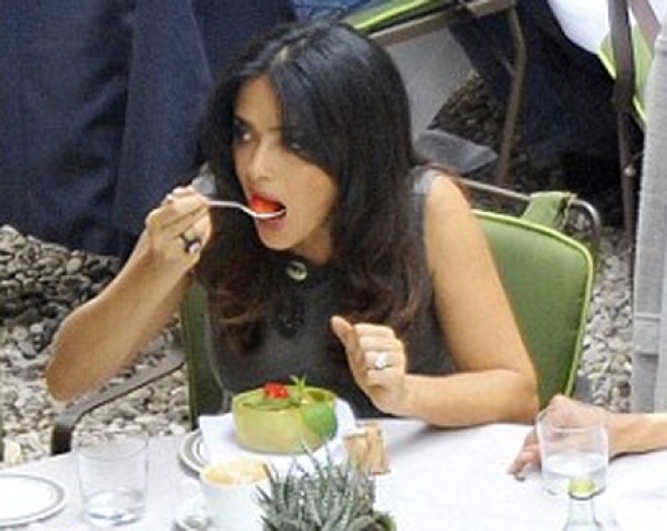 Initial Salma Hayek comandase un bol de paste, insa tine la silueta si astfel s-a gandit sa inlocuiasca reteta plina de calorii cu fructe.