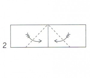 Pasul 2 - Formeaza o cuta in mijloc pentru a crea o linie de referinta in centrul dreptunghiului si pliaza colturile de sus in jos de-a lungul acestei linii.