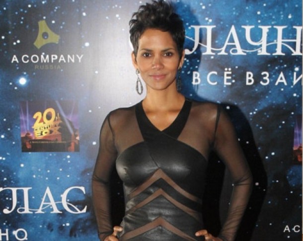 Halle a purtat o rochie neagra, din piele, foarte mulata si cu fasii decupate atat in partea din fata cat si in spate, lasandu-si astfel cat mai mult la vedere corpul incredibil.