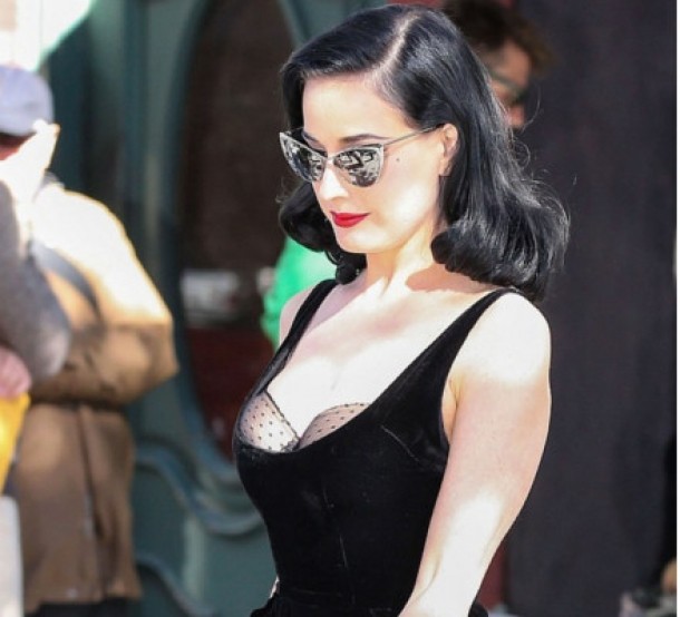 Fidela stilului sau, Dita nu a putut sa isi aranjeze parul decat intr-o maniera retro, iar rujul rosu nu putea lipsi nici el.