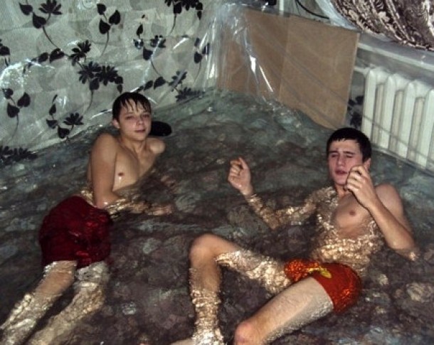 Daca nu iti permiti sa mergi la mare vara asta, cand temperaturile de afara te fac sa te simti ca intr-un adevarat cuptor, mai bine iti faci propria piscina acasa la tine. Exact acest lucru au facut si acesti adolescenti rusi zilele trecute, creand o mica piscina functionala in livingul apartamentului lor din orasul Oryol.
