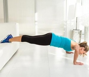 Iata o noua versiune a banalelor flotari. Sprijina varful picioarelor pe canapea si mainile pe sol. Indoind bratele, coboara usor spre sol. Revino apoi in poziti initiala. Fa cate 10 repetitii. Daca aceasta versiune ti se pare solicitanta, poti inversa exercitiul si sa te sprijini cu mainile de canapea lasand picioarele pe sol.