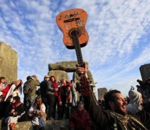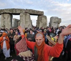 Bat din tobe, mediteaza, danseaza si se agita intr-un efort colectiv pentru a saluta soarele in cea mai lunga zi din an in emisfera nordica la Stonehenge. Situtat in campia Salisbury, la aproximativ 140 km sud-vest de Londra, misteriosul site a fost construit in mai multe etape intre 3000 i.Hr. si 1.600 i.Hr.