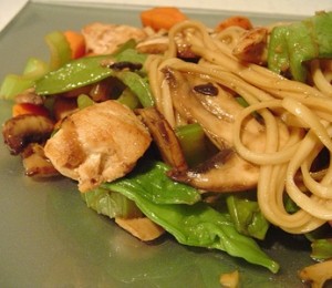 Se fierb spaghetele si se scurg. Se paseaza rosiile, dupa care se pun intr-o tigaie impreuna cu chimenul si se fierb la foc mediu timp de 20 minute. In alta tigaie se prajeste ceapa impreuna cu usturoiul si ciupercile pana ce devin moi. Apoi se adauga carnea de curcan si coriandrul.Peste mixtura se adauga sosul si se lasa la foc mic inca 4-5 minute.Se aseaza spaghetele pe o farfurie si se toarna sosul deasupra.