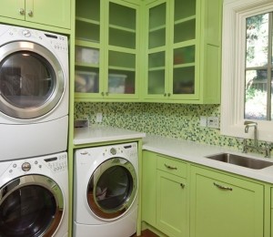 Dacă nu ai suficient spaţiu la dispoziţie, optează pentru aşezarea pe verticală. Aşază uscătorul de rufe peste maşina de spălat, iar lângă ele creează un dulap în funcţie de spaţiul rămas.