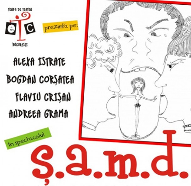 Compania de Teatru E.T.C. Bucuresti are placerea de a vi-i prezinta pe: Flaviu Crisan, Alexa Istrate, Bogdan Corsatea si Andreea Grama, in spectacolul S.A.M.D.