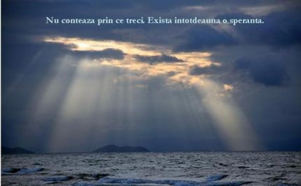 Speranta...nu este un lucru intamplator oferit pentru a fi zdrobit de imprejurarile vietii...mai degraba e o recompensa pentru lupta careia i-ai tinut piept, e un dar de binecuvantare.