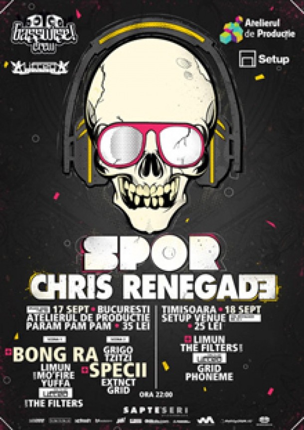 Pe 17 septembrie se anunta un party de zile mari, cu doua scene si multe nume sonore. Cu ocazia lansarii hotspotului Param Pam Pam (Splaiul Unirii nr. 160, zona Timpuri Noi), Atelierul de Productie te invita la Lifted Music, trei ore de beaturi heavy de la Spor si Chris Renegade, precum si Specii, trupa compusa din Chimie si Dragonu’...