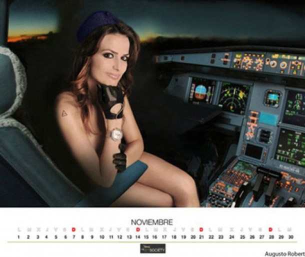Calendarul, ale carui imagini au fost preluate de multe publicatii spaniole, surprinde insotitoarele de zbor de la compania Air Comet pozand in ipostaze provocatoare, in interorul si in afara aeronavelor.