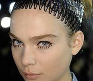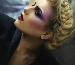 Machiaj – Un chip nude si un fard mistic mov pus in evidenta de mascara pentru volum. Versace si Marios Schwab au preferat acest tip de make-up pentru a se asorta cu tinutele lor spectaculoase pentru SS’10.