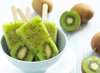 4. Se toarnă sucul în pahare și, opțional, se ornează fiecare cu felii de kiwi, castravete sau alte fructe și legume, apoi se consumă rece.