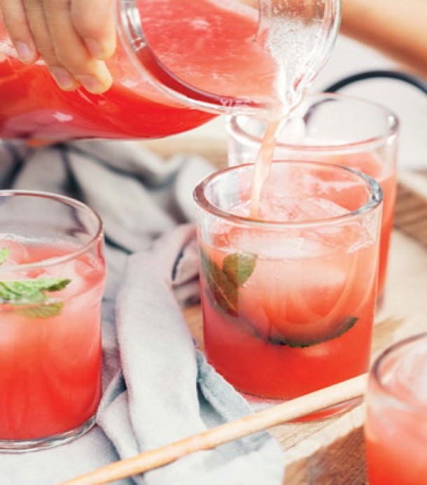 Ai nevoie de: 2 felii de pepene, cateva fire de menta proaspata, zeama de la 1/2 lime.