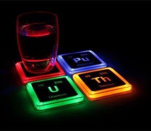 Pentru fiecare element din tabelul lui Mendeleev exista un suport de pahar. Mai mult decat atat, suportul este luminos si se aprinde numai atunci cand pui paharul/ cana pe el. In momentul in acre il ridici, lumina din suport se va stinge.