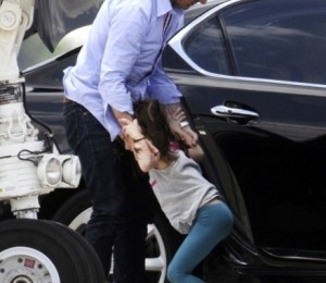Suri a plecat din Miami, impreuna cu parintii ei, Tom si Katie. Tatal ei a ajutat-o sa se dea jos din masina si sa se urce in avionul personal, dar nu inainte ca Suri sa le arunce catev priviri jurnalistilor.
