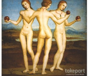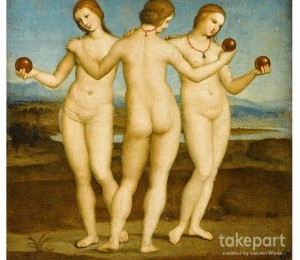 Pentru a sublinia aceasta idee de artificial, iti prezentam ce a facut Lauren Wade in Photoshop cu ajutorul unora dintre cele mai iubite nuduri din istoria artei plastice. Lauren Wade, editor foto senior pentru publicatia TakePart, s-a intrebat ce s-ar intampla daca muzele si nudurile unor artisti precum Titian si Rafael ar fi fost expuse la presiunile femeilor din ziua de azi.