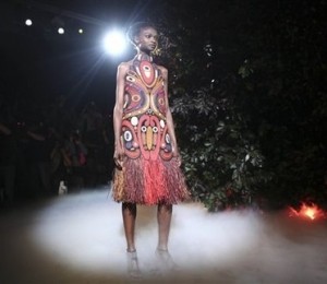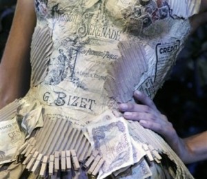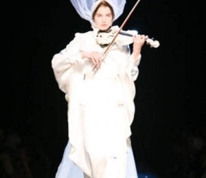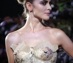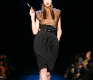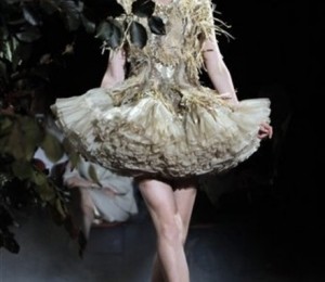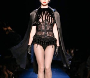 Daca materialele unei tinute haute-couture costau mai mult decat o masina, Jean Paul Gautier a inversat putin ecuatia pe podium unde Dita Von Tees a desfacut textura cu textura pana cand a ramas doar cu un corset pe care era aplicata o mica “harta” a scheletului. Nimic la Gautier nu a fost la limita normalului cu care suntem obisnuite, nici macar mireasa care purta un trenci.