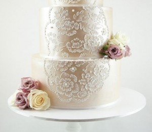 Dantela este şi ea la mare căutare în materie de torturi, elementele din dantelă aplicate pe acestea fiind în tendinţe în 2016. Bineînţeles, un tort îmbrăcat în dantelă din marţipan este potrivit pentru o nuntă organizată într-un salon de nunţi.