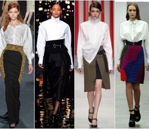 Cămașa albă – cămașa clasică albă este preferata marilor designeri în 2016, începând cu Zac Posen și până la Fendi. Aceasta poate fi purtată atât la ținute office, cât și pentru a compune outfit-uri de ocazie.