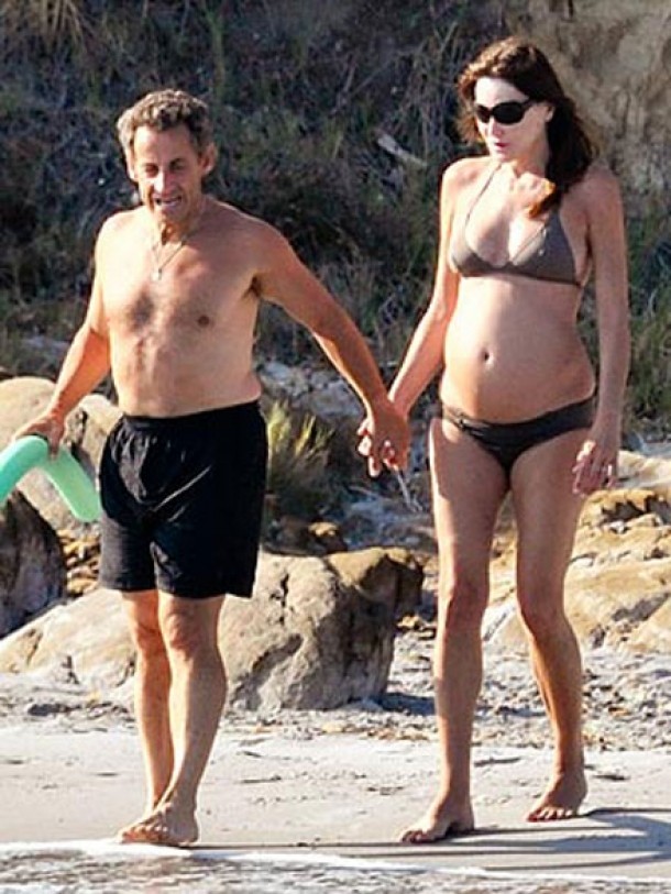 Potrivit revistei People, Carla Bruni-Sarkozy, insarcinata in 5 luni si jumatate, a iesit la o plimbare pe plaja din Fort de Bregancon, duminica, impreuna cu sotul ei, presedintele Nicolas Sarkozy, aratandu-si burtica.