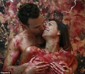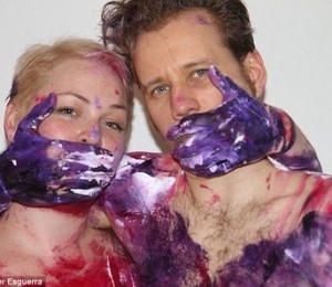 "Le spun sa ia vopseaua, sa se aseze pe panza si sa o toarne unul peste celalalt si apoi sa faca dragoste asa cum ar face in mod obisnuit.", declara artistul, potrivit dailymail.co.uk.