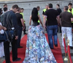 Pe covorul rosu, Inna a purtat o rochie facuta special pentru acest eveniment, in semn de multumire pentru fanii ei. Astfel, au fost imprimate pozele fanilor care s-au facut remarcati pe pagina sa de Facebook. Tinuta a fost accesorizata cu un colier si o bratara in forma butonului "Like".