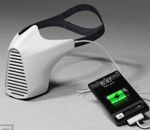 Masca este compusa dintr-o serie de mici generatoare eoliene si un cablu ce transfera energia creata catre aparatul dorit.