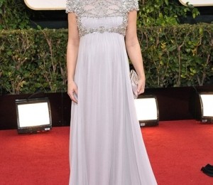 Actrita a purtat o rochie simpla in partea de jos si sofisticata in zona pieptului, umerilor si gatului, tocmai pentru a atrage atentia privitorului catre zona superioara a trupului, evidentiindu-i astfel trasaturile fetei, puse in valoare si de coafura adoptata.