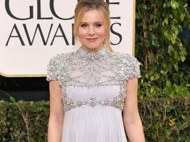 Kristen Bell a optat pentru un machiaj simplu si o coada lejera, lasand cateva suvite sa ii incadreze chipul.