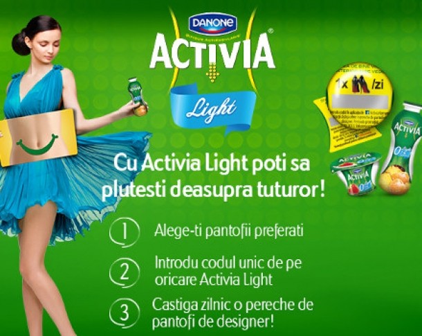Intra pe aplicatia „0% grasime, 100% stil” de pe pagina de Facebook Activia, alege-ti perechea de pantofi preferata si inscrie codul unic de pe oricare Activia Light. Poti castiga zilnic, prin tragere la sorti, o pereche de pantofi stiletto de designer. Mai multe coduri introduse in aplicatie, mai multe sanse de a castiga pantofii pe care orice femeie si-i doreste.