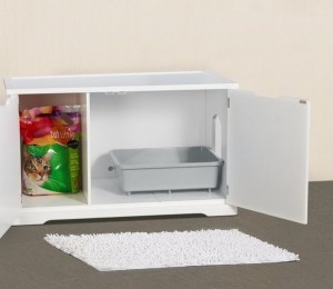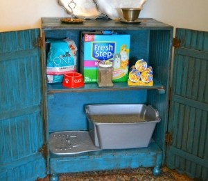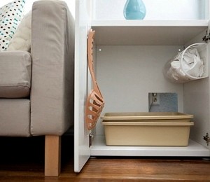 Dulapul în care ţii coşul de gunoi este un spaţiu ideal şi pentru litiera pisicii. Acestea are găuri în spate care ajută la ventilaţie şi îţi permite să nu mai fii nevoită să laşi litiera pisicii la vedere.