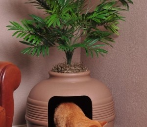 Dacă îţi plac foarte mult plantele de interior, poţi să depozitezi litiera pisicii în interiorului vasului pe care aşezi floarea. Este destul de simplu să creezi o astfel de ascunzătoare, trebuie doar să îţi achiziţionezi un vas suficient de mare încât să încapă pisica în el, dar suficient de mic încât să poată fi depozitat în colţul încăperii.