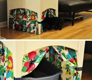 Dacă locuieşti într-un apartament mic, poţi să îţi depozitezi litiera sub măsuţa de cafea din cameră. Poţi să faci o perdea pentru măsuţă care atunci când este trasă te ajută să maschezi litiera şi nimeni nu o să ghicească vreodată că ai pus-o acolo.
