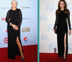 Doua vedete, aceeasi rochie - Christina Aguilera versus Angelina Jolie!