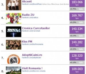 Pe locul doi se situeaza Edward Maya care a strans peste 192.000 de fani, fiind urmat de trupa Akcent cu peste 183.000, potrivit facebrands.ro.