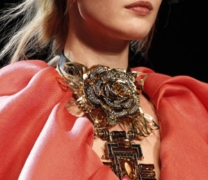 Sezonul rece cere insistent masuri XXL si opulenta. Sa-i dam Cezarului, ce-i al Cezarului! Colierele mari, opulente vin ca ofranda in colectiile designerilor pentru toamna-iarna ’11-’12. Givenchy, Louis Vuitton si Lanvin s-au conformat si au completat linia vestimentara pe care o propun in acest sezon cu lanturi si coliere care cuprind strans gatul unei femei.