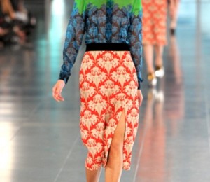 Dupa prea multe sezoane in care am purtat fuste vaporoase si lungi a venit din nou momentul de celebritate al fustei creion. Jonathan Saunders a oferit nota distincta a senzualitatii, folosind imprimeuri florale pe fuste creion.