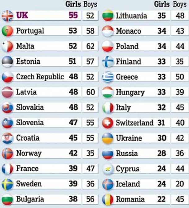 Pe locul doi in acest top, se regasesc tinerele din Portugalia, in timp ce adolescentele din Malta ocupa a treia pozitie.