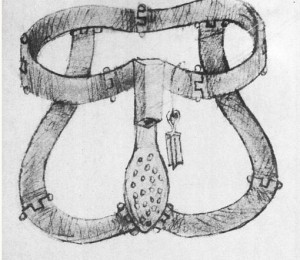 Cel mai vechi desen existent care reprezintă o centură de castitate a apărut în 1405, într-o lucrare de inginerie militară numită Bellifortis. Iar desenul a apărut printre alte modele detaliate şi desene ce reprezentau catapulte, armuri, dispozitive de tortură şi alte instrumente de război.