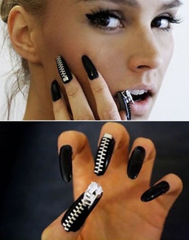 Una dintre cele mai neobisnuite tendinte in manichiura din 2010: Unghii negre cu aplicatie fermoar.