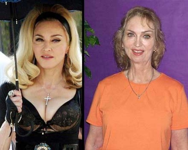 Asa ca a imbracat-o pe Madonna potrivit pentru varsta ei si i-a dat un look care ar fi reprezentativ pentru cum ar arata ea daca ar fi imbatranit natural.