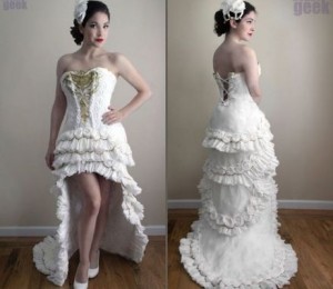 Poate ca ai mai auzit pana acum de rochii de mireasa realizate din materiale inedite, cum ar fi rochia de mireasa din vopsea. Dar acum tanara si-a pus la munca mintea ei inventiva si, cu o indemanare artistica deosebita, a reusit sa creeze o rochie de mireasa din hartie igienica.