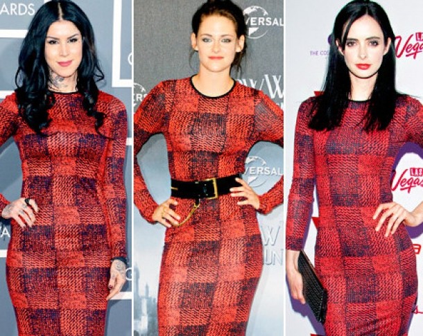 Astfel, cand Krysten Ritter a pasit pe covorul rosu in Las Vegas, si-a etalat silueta intr-o rochie pe care au purtat-o anterior Kat Von D si Kristen Stewart.