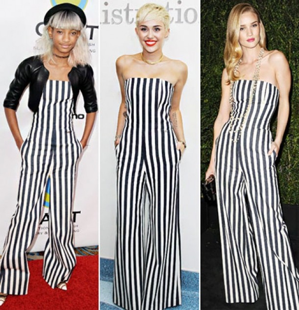 Cele trei celebritati au optat recent pentru o salopeta Chanel in dungi verticale, albe si negre.