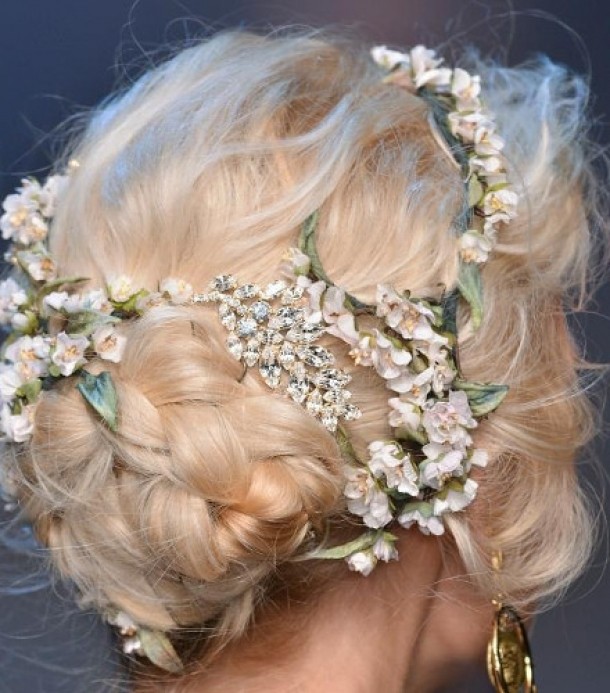 Dolce and Gabbana ne recomanda sa ne punem flori in par in aceasta primavara. Fie ca ne prindem accesoriile cu flori intr-un coc, ori ne infumusetam cu ele impletiturile, nu avem cum sa dam gres cu o coafura accesorizata asa.
