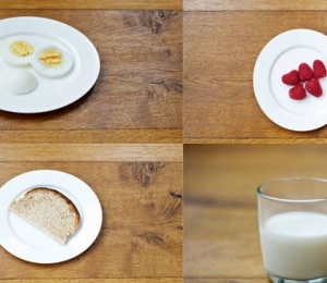 În imagine poţi vedea cum arată o porţie de ou, de pâine, de lapte sau de fructe de pădure pentru un copil: