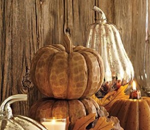 Un coş împletit din nuiele plin cu dovlecei, tărtăcuţe, bostani vopsiţi, frunze uscate şi conuri de brad pe care să îl aşezi pe masa din mijlocul încăperii sau lângă şemineu.