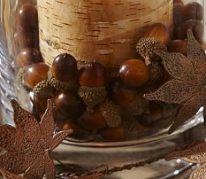 Într-un vas de sticlă poţi aşeza frunze uscate amestecate cu pănuş şi grăunţe colorate, creând astfel un obiect decorativ deosebit.