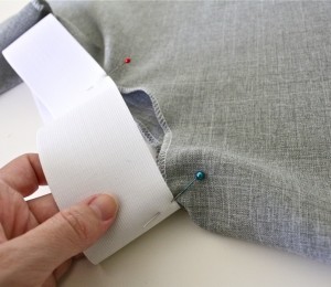 Prinde elasticul în talie cu ace de siguranţă şi începe să coşi la maşină.