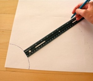 Pe o coală A3 creează un cerc cu raza 8,48 cm, iar cu o riglă stabileşte lungimea pe care vrei să o aibă fusta ta cloş.