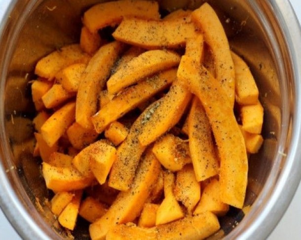 1. Curata dovleacul, apoi feliaza-l exact ca pe cartofii prajiti.
